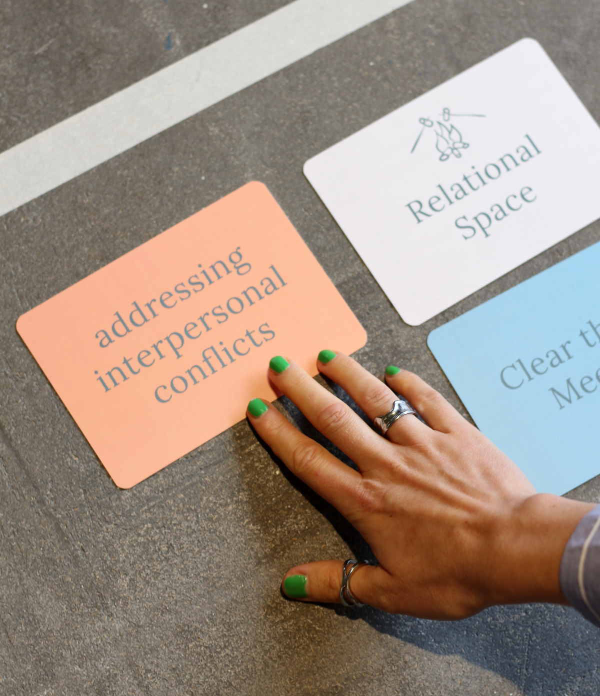 This card set doesn't come with instructions. It is intended for people who are familiar with the model of the 4 Spaces and want to convey it to others in a playful way. As part of the Loop Fellow training, we teach some possible ways to use this puzzle. More information about the training here.